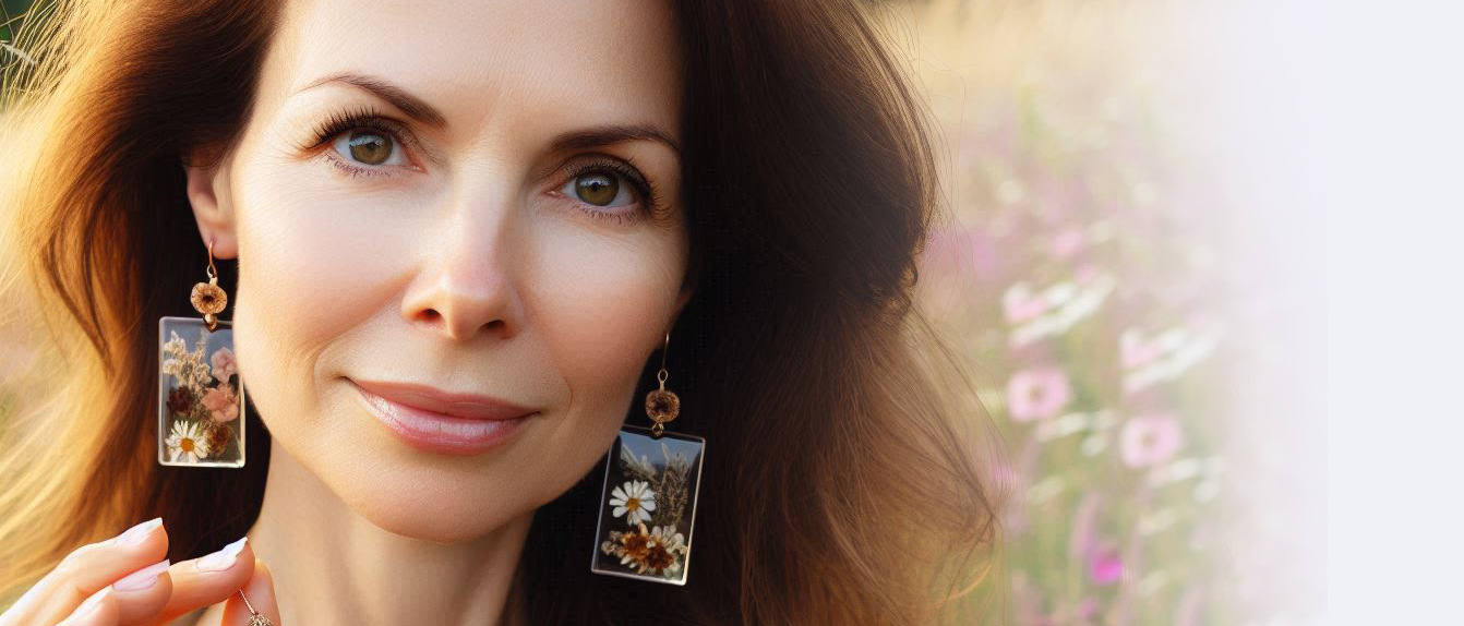 Elk sieraad, gemaakt epoxy met ondermeer gedroogde bloemen en planten, viert de tijdloze schoonheid van de natuur.